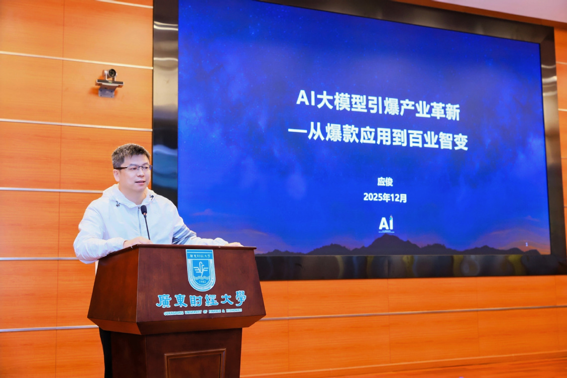 12月6日上午,第十一期粤商领袖大讲堂在我校隆重举行。本次大讲堂以“AI赋能粤商创新:驱动数字未来与产业智变”为主题,特邀人工智能领域的顶尖学者与产业专家,共同探讨粤商在人工智能时代的发展路径。学校党委常委、副校长雷宇出席大讲堂并致辞。工商管理学院(粤商学院、创新创业学院)院长马宗国、副院长王斌及校内外师生、粤商企业家代表等近200人参加了本次活动。大讲堂由马宗国主持。
